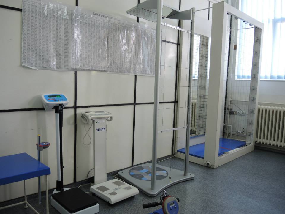 Dotare: adipocentimetru cu presiune constanta; banda metrica; cantar medical digital; cadru antropometric, compas antropometric; dinamometre (flexor, scapular, lombar); program pentru prelucrarea computerizata a datelor antropometrice, calculul compozitiei corporale si al unor indici specifici medicinei sportive; scarita de mobilitate; taliometru digital; tabele statistice pentru aprecierea cresterii si dezvoltarii staturo-ponderale.