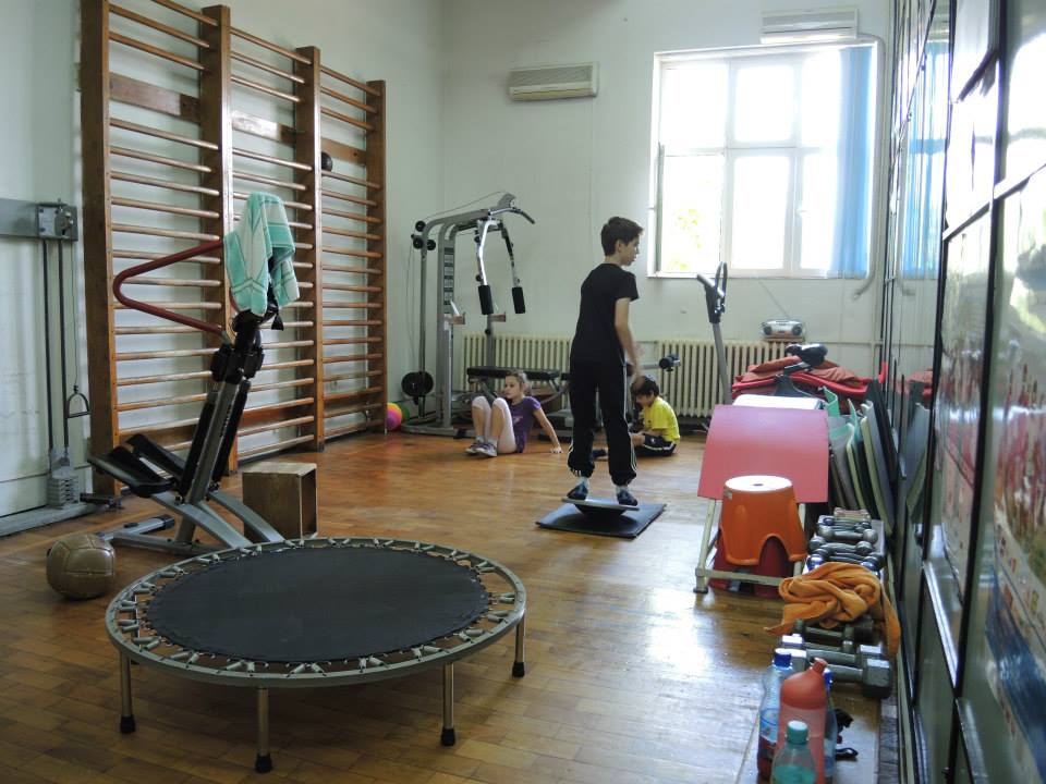 Dotare: haltere, gantere, spaliere, mingi medicinale, banca gimnastica, aparat multifunctional pentru forta.